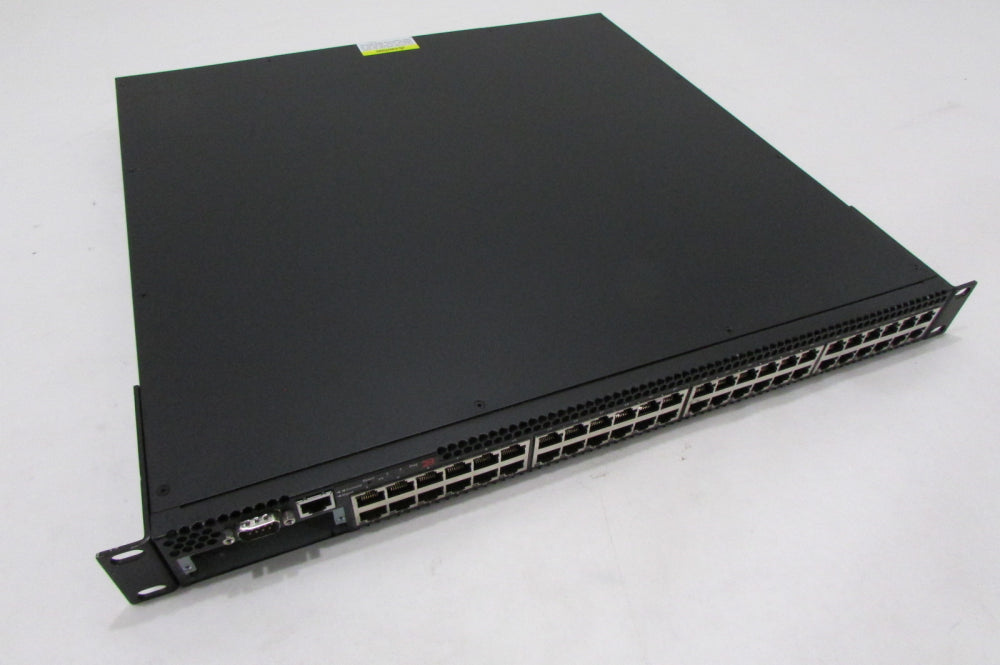 Brocade FastIron FCX648-E 44 10/100/1000 Mbps RJ-45 ports, plus 4-port 1 Gbps SFP module (optional) combined with the first four 10/100/1000 Mbps RJ-45 copper ports (acting as a Combo port).