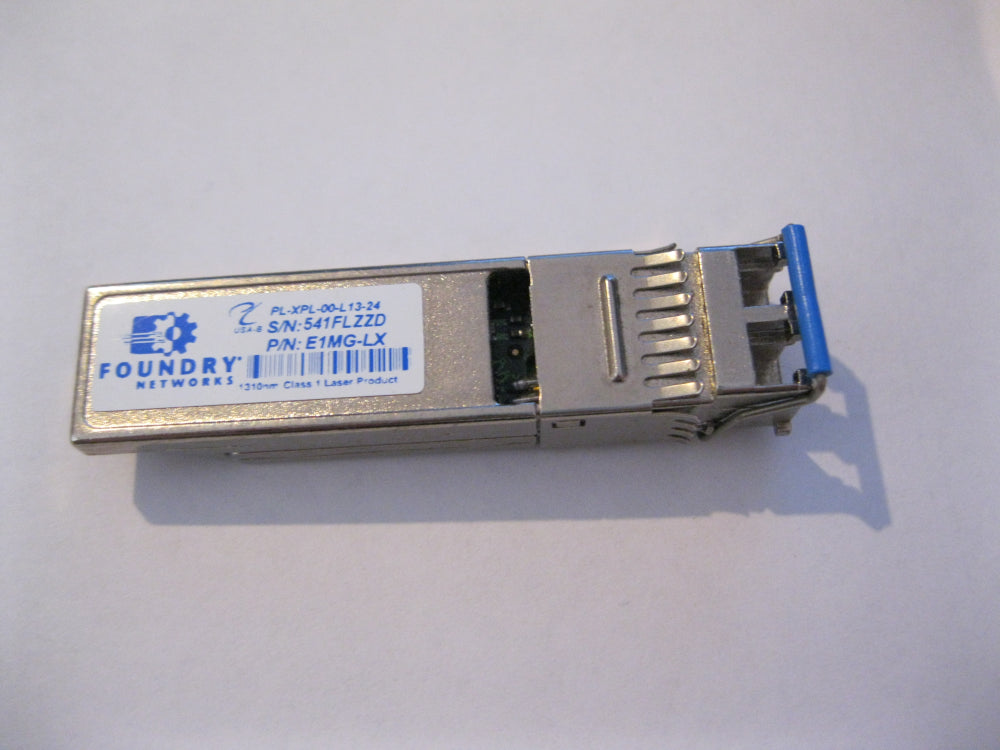 Foundry compliant E1MG-LX is a 1000BASE-LX SFP 1310nm 10km transceiver module. The E1MG-LX transceiver module provides a low cost high-performance connection. The E1MG-LX is 100% compatible with all Foundry series equipment which support SFP transceivers.