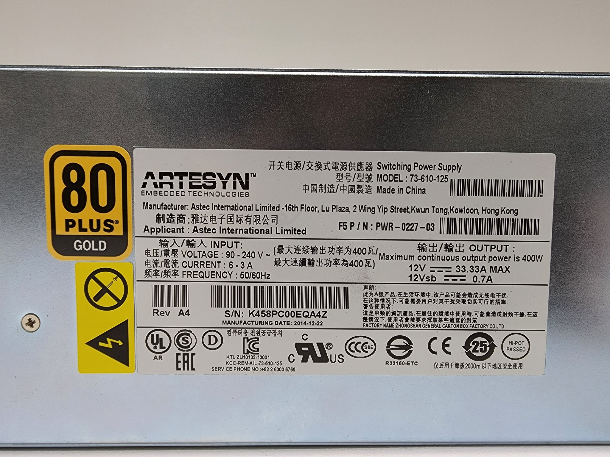 F5 NETWORKS ARTESYN 400W 80PLUS GOLD POWER SUPPLY FOR 7000