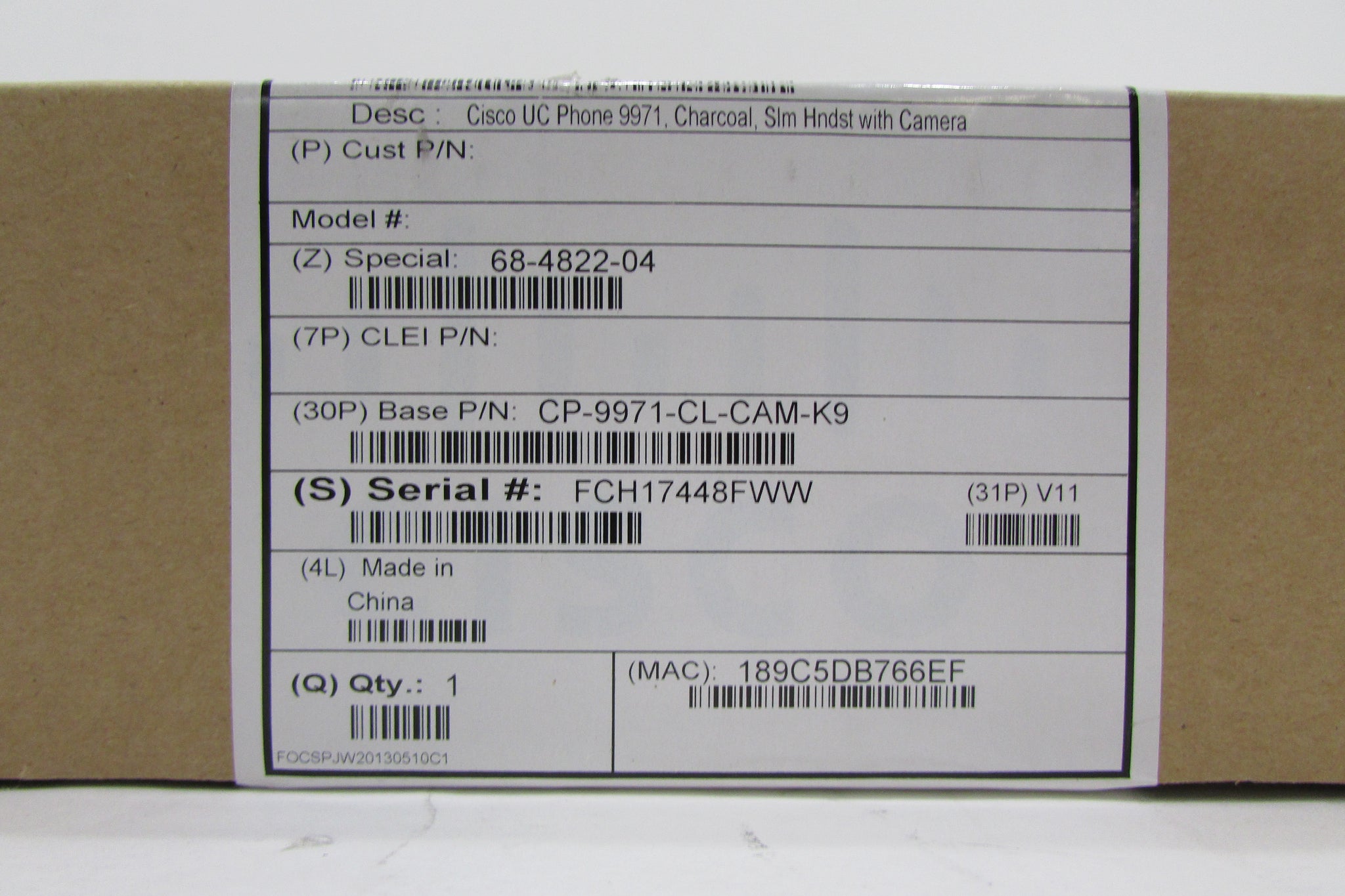 CISCO 9971 SLIMLINE IP PHONE CISCO CP-9971-CL-CAM-K9 (5.6" BACKLIT COLOR DISPLAY, SLIMLINE HANDSET, POE, REQUIRED CISCO'S COMMUNICATIONS MANAGER) 68-4822-04