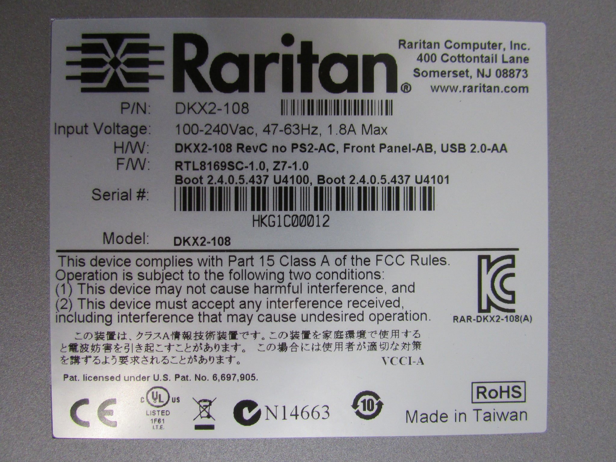 Raritan Dominion KX2-108 KX II 8-Server Ports, 1 Remote Port KVM Over IP Switch
